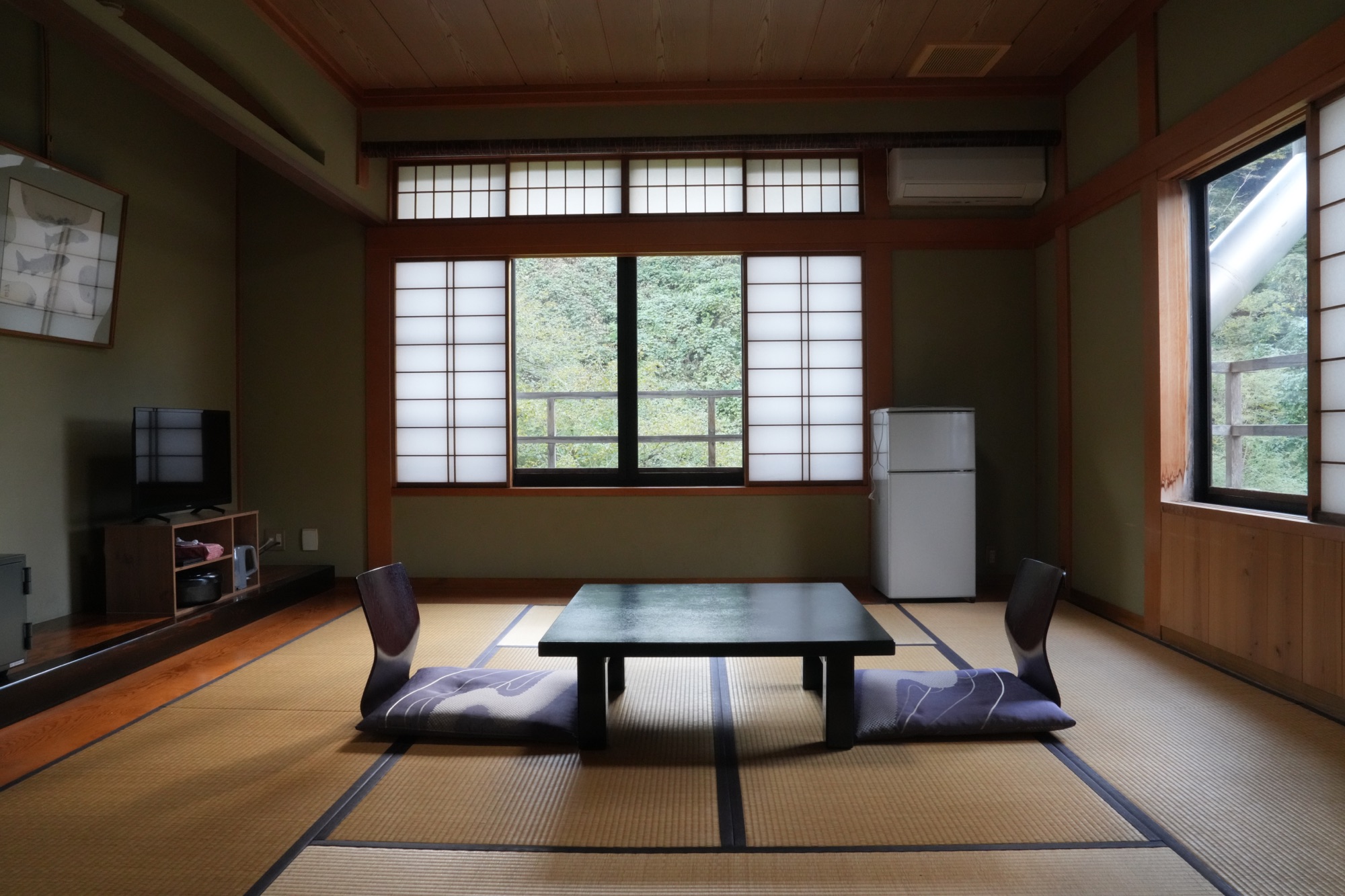窓から見える雄大な自然。時折聞こえる川のせせらぎ。