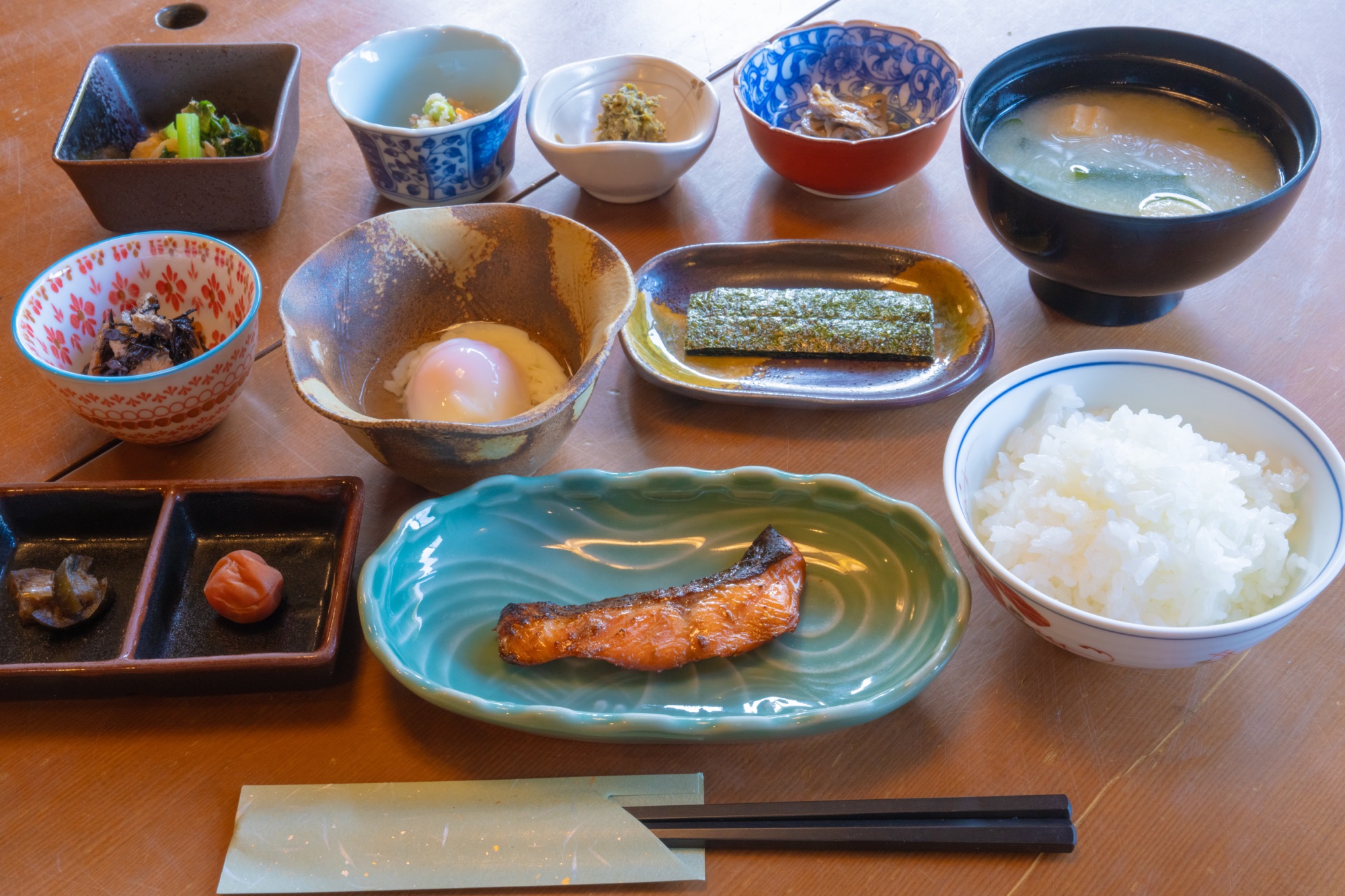 ▲朝食(季節の小鉢をふんだんに使用した和定食、地元農家直送の炊き立てのご飯をご用意しております)